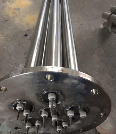 使電熱管于法蘭連接,也可利用緊固裝置的形式,即每支電熱管上焊由緊固件。然后與法蘭蓋采用螺母鎖緊。管子于緊固件采用氬弧焊接,永不泄漏。緊固件密封處采用科學(xué)的工藝。單支更換極為方便。